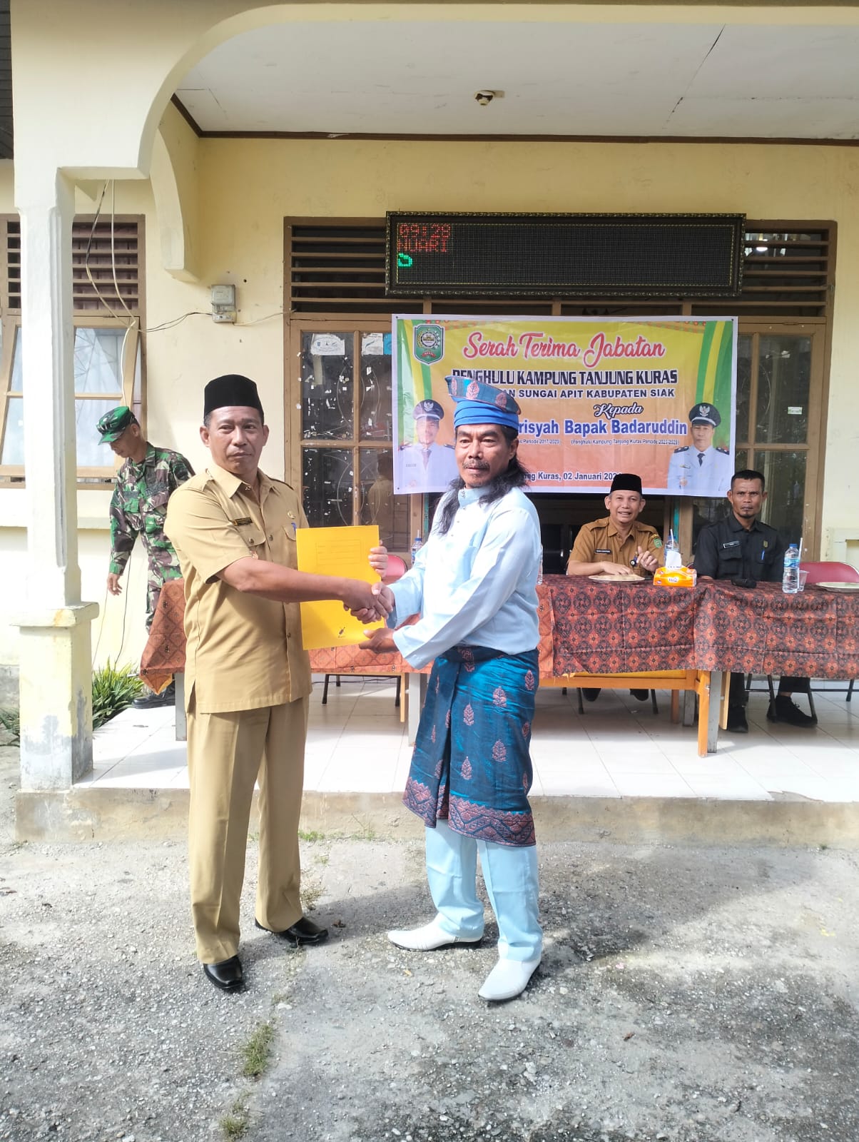 Pada suatu peristiwa bersejarah di Kampung Tanjung Kuras, Kecamatan Sungai Apit, Kabupaten Siak, tepatnya pada [tanggal], masyarakat menyaksikan momen serah terima jabatan penghulu yang penuh makna. Acara ini menjadi perwujudan pergantian kepemimpinan yang sarat nilai-nilai tradisional dan partisipasi masyarakat.